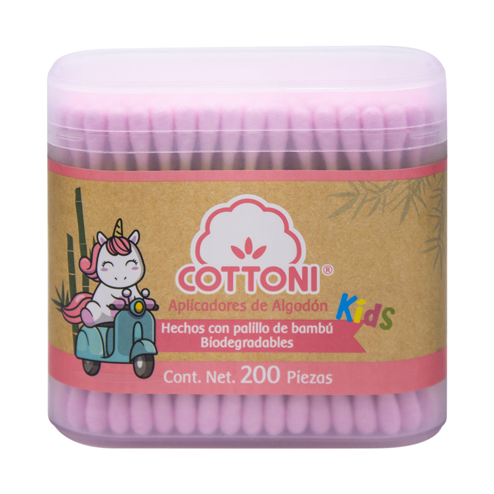 APLICADORES DE ALGODÓN Kids BIODEGRADABLES (Cottoni) Col. Rosa Tarro c/200 Pzs.