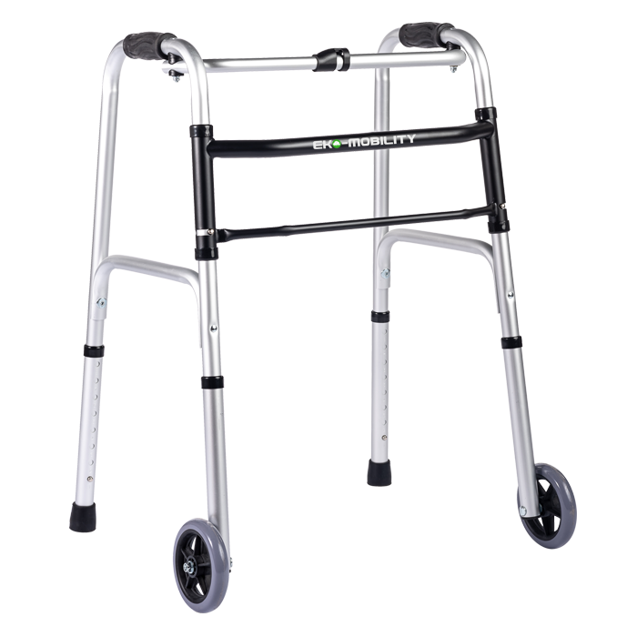 ANDADERA de ALUMINIO c/RUEDAS 5" (Eko-Mobility) Col. Plata